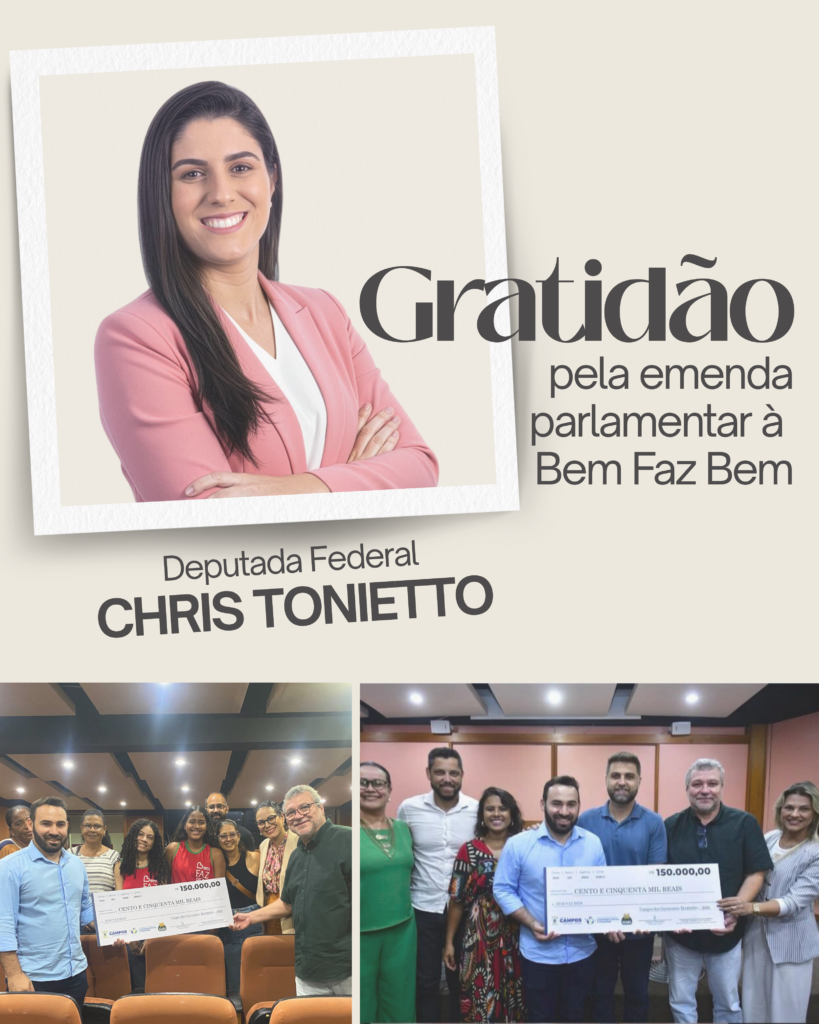 A Bem Faz Bem foi contemplada com uma emenda parlamentar no valor de R$ 150 mil, destinada pela deputada federal Chris Tonietto, com o objetivo de fortalecer as ações sociais desenvolvidas pela instituição em Campos dos Goytacazes. Os recursos serão aplicados no Programa de Serviço de Convivência e Fortalecimento de Vínculos, ampliando o atendimento a crianças, jovens e suas famílias.
